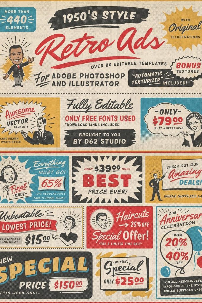 Một số tem mẫu quảng cáo retro những năm 1950. Nguồn: Pinterest