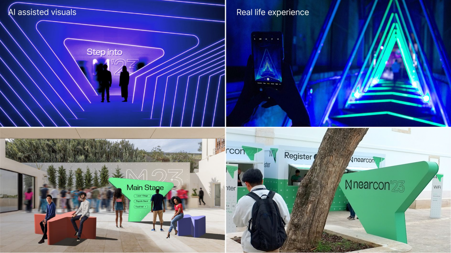 Vậy việc sử dụng AI trong một dự án cụ thể như thế nào? Tom Munckton, trưởng bộ phận thiết kế tại Fold7, giải thích cách họ tận dụng AI khi tạo ra nhận diện hình ảnh cho sự kiện thường niên của thương hiệu Web3 Near vào tháng 11 năm ngoái tại Lisbon.