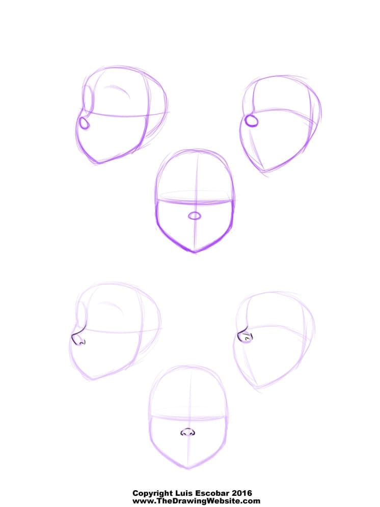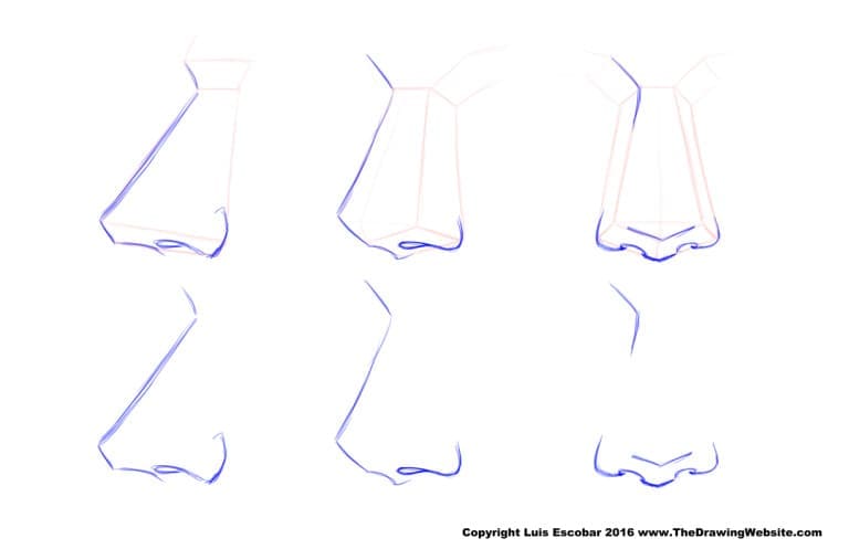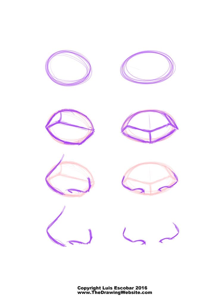 Điều này có thể không đúng với mọi chiếc mũi vì trong thực tế có vô số kiểu mũi khác nhau. Nhưng đây là một công thức cơ bản, và bạn có thể điều chỉnh tùy theo kiểu nhân vật bạn đang vẽ.