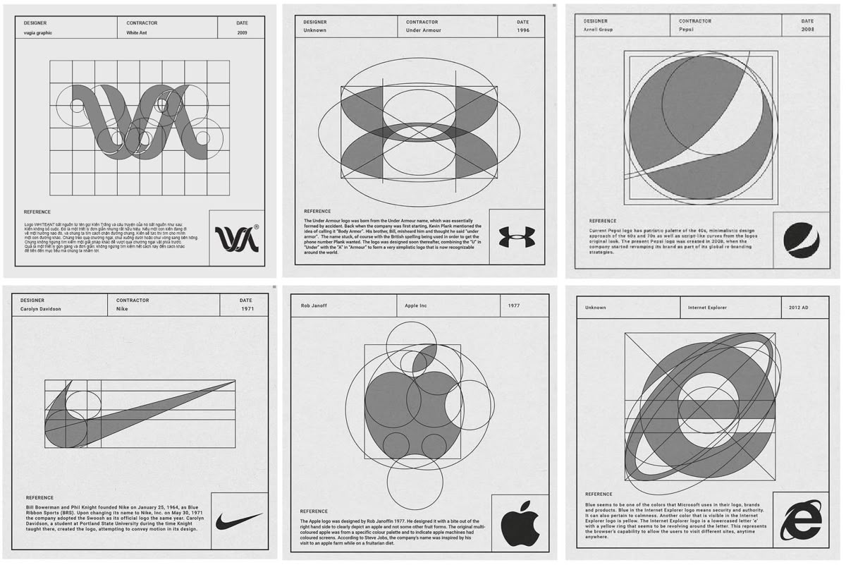 - Không phù hợp cho phân tích chi tiết: Hệ thống lưới trong thiết kế logo không phải lựa chọn lý tưởng khi bạn cần phân tích sâu hoặc nhận xét cụ thể từng logo, do không gian trình bày hạn chế.
