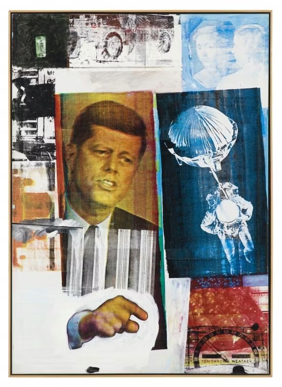Robert Rauschenberg, một trong những nghệ sĩ Pop Art Mỹ sớm nhất và phần nào được xem là người kế tục tinh thần của nghệ sĩ Dada “điên rồ” Marcel Duchamp. Ông sáng tác các tác phẩm collage đa chất liệu, đưa những vật thể bị vứt bỏ vào trong tranh vẽ, gợi liên tưởng tới những di vật bị chôn vùi làm nên dấu tích của các nền văn minh đã mất. Một trong những tác phẩm nổi tiếng nhất của ông, bức Retroactive II (1963), sử dụng kỹ thuật in lụa thương mại cùng phương pháp khai thác hình ảnh sẵn có hình ảnh từ các bức ảnh nổi tiếng, qua đó khẳng định rõ vị trí của ông trong phong trào Pop Art.