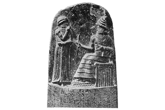 Một trong những tác phẩm nổi tiếng nhất của mỹ thuật Lưỡng Hà cổ đại là Bộ luật Hammurabi được tạo tác vào khoảng năm 1792 TCN. Tác phẩm này khắc trên đá hệ thống luật pháp của Babylon, phía trên được trang trí bằng hình ảnh vua Hammurabi – vị vua thứ sáu của vương quốc Babylon – cùng vị thần Mesopotamia là Shamash.