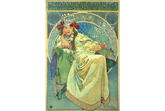 Nhà thiết kế đồ họa người Tiệp Khắc Alphonse Mucha được biết đến nhiều nhất qua các áp phích sân khấu dành cho nữ diễn viên Pháp Sarah Bernhardt.