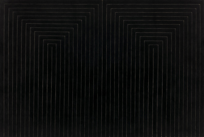 Họa sĩ người Mỹ Frank Stella là một trong những người tiếp nhận Chủ nghĩa Tối giản sớm nhất. Các bức tranh phi đại diện, tiêu biểu là loạt Black Paintings được ông hoàn thành trong giai đoạn 1958 – 1960. Mỗi tác phẩm trong dòng tranh này đều sử dụng mô thức các dải sọc thẳng góc có bề rộng đồng đều, được in bằng mực đen ánh kim.