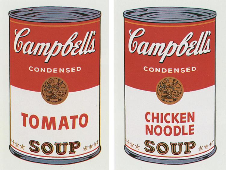 Các nghệ sĩ Pop Art như Andy Warhol và Roy Lichtenstein tìm cách khẳng định rằng: nghệ thuật có thể khai thác từ bất kỳ nguồn nào, và không một hệ thức văn hóa cố định nào có thể phá vỡ điều đó. Tác phẩm nổi tiếng nhất của trào lưu Pop Art phải kế đến chính là Campbell’s Soup Cans của Warhol.